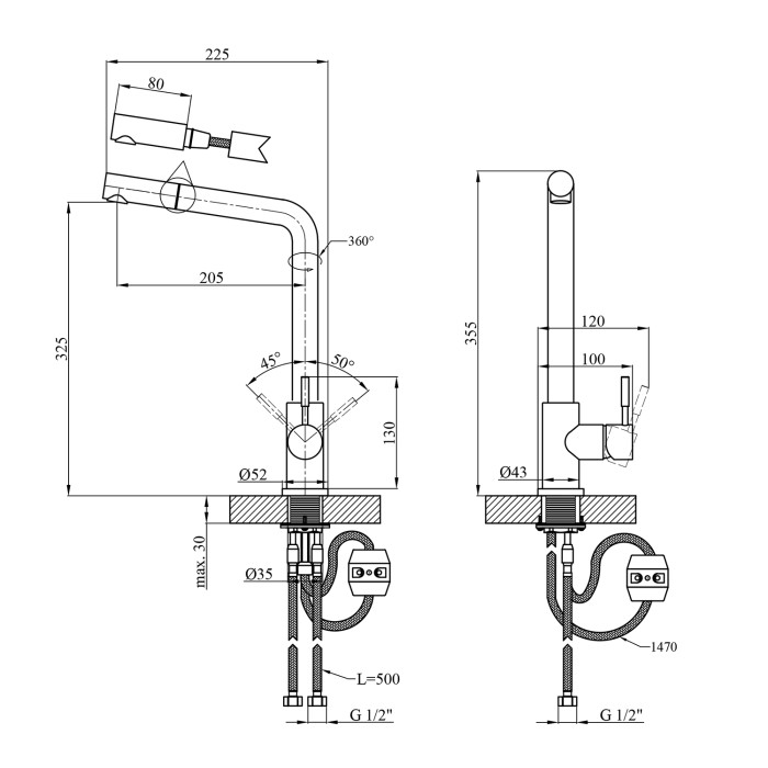 Змішувач для кухні з висувним виливом Kroner KRPё Edelstahl Klassisch - PVD03917