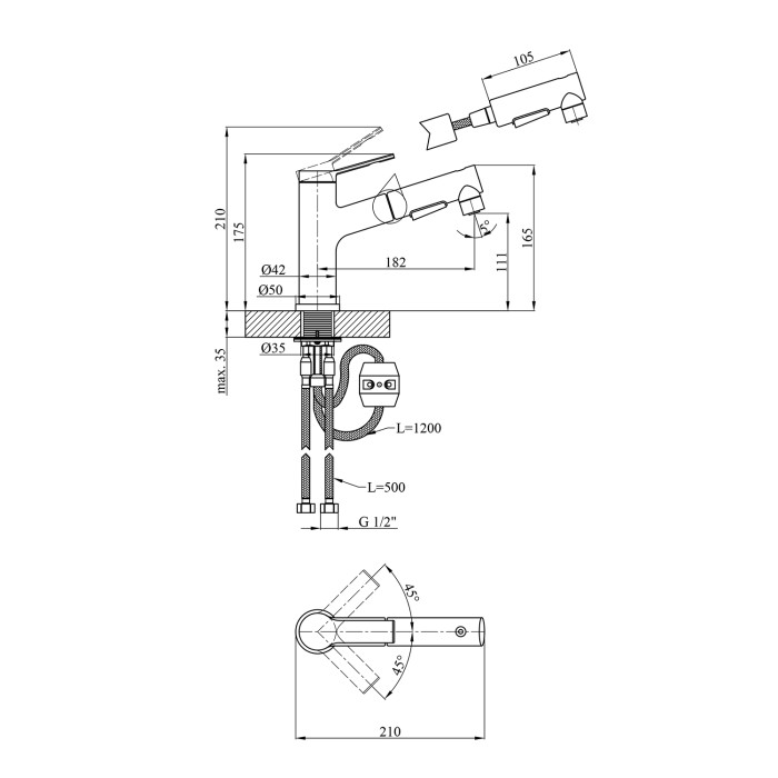 Змішувач для раковини з висувним виливом Kroner KRP Edelstahl Klassisch - SCH030-T
